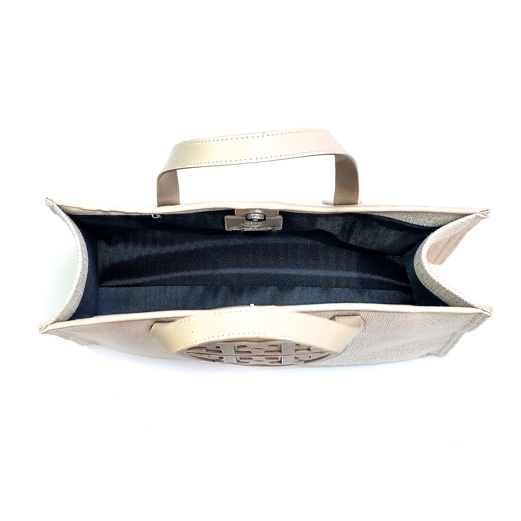 • LEATHER HANDLES AND LOGO PATCHWORK